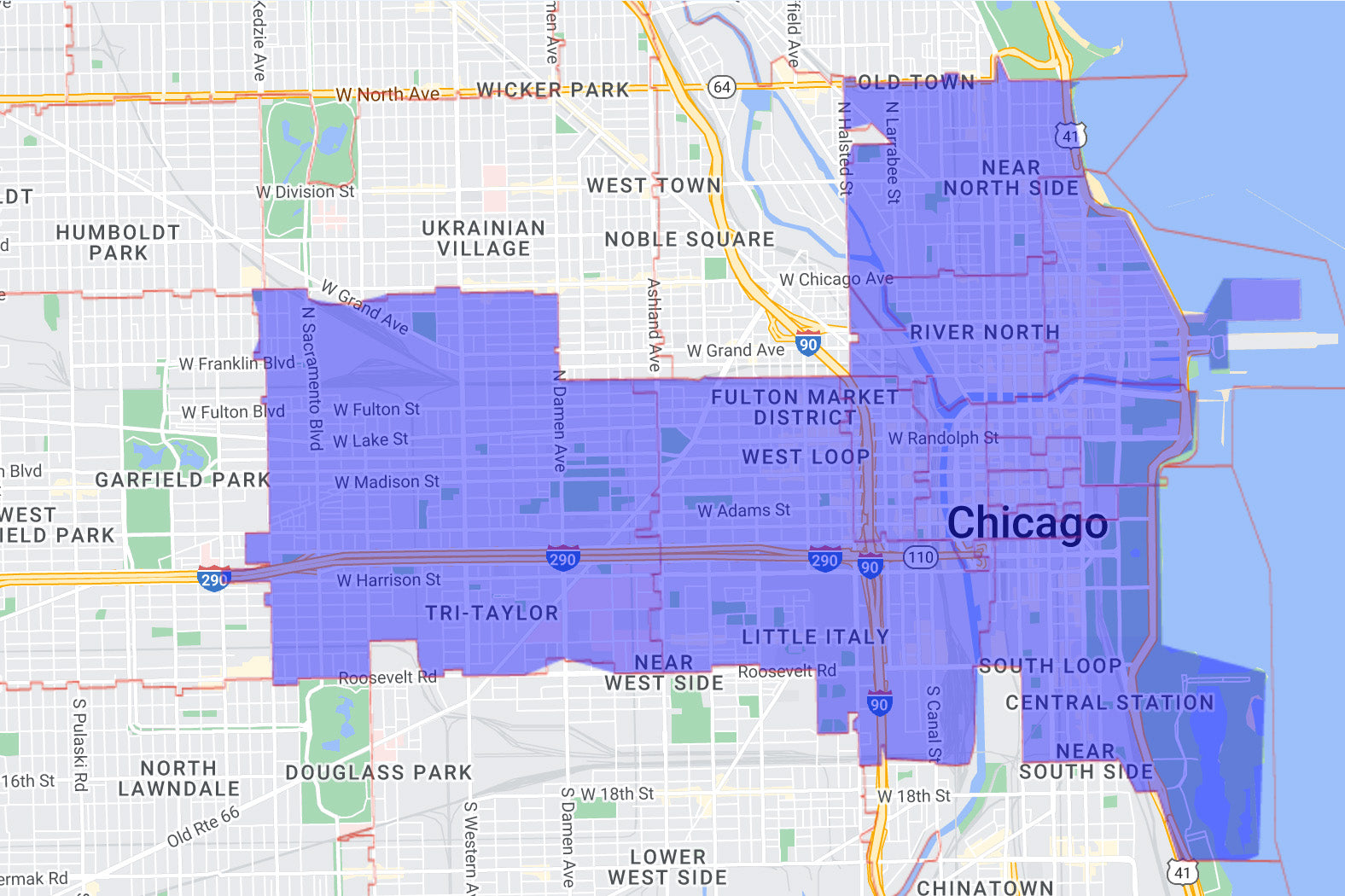 We also offer home delivery to those who live in the city from Downtown Chicago to Evanston for a $15 to $20 delivery fee, as follows: